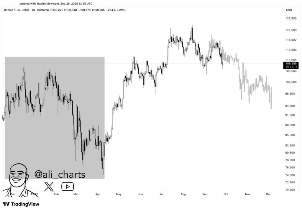 تحلیل نمودار قیمت بیت کوین – منبع: Ali Martinez