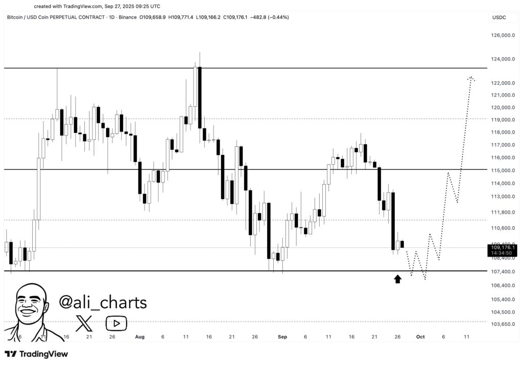 با این حال، بیت کوین توانست در این سطح حمایت پیدا کند و فعلاً آن را حفظ کرده است. به گفته علی مارتینز (Ali Martinez)، سطح بحرانی برای بیت کوین در حال حاضر ۱۰۷,۲۰۰ دلار است. اگر قیمت بیت کوین بالاتر از این سطح بماند، شانس بازگشت به سطح ۱۱۵,۰۰۰ دلار و حتی ۱۲۳,۰۰۰ دلار، به شکلی جدی افزایش مییابد.