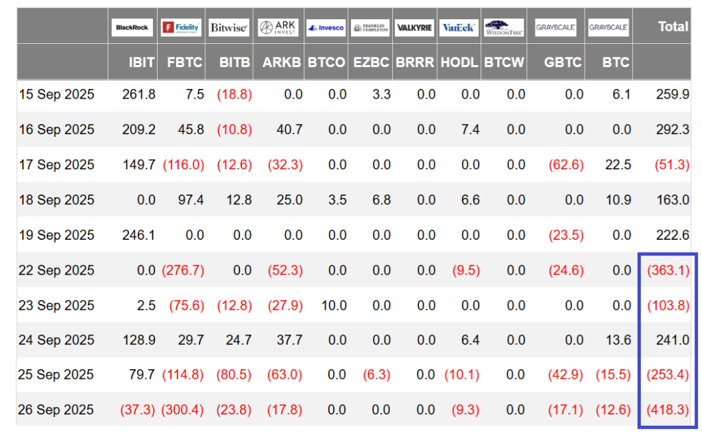 حدود ۹۰۰ میلیون دلار در هفته گذشته از ETFهای آنی بیت کوینِ لیستشده در ایالات متحده خارج شد که نگرانی متوسطی بهویژه با توجه به اینکه نهنگهای بلندمدت ۳.۴ میلیون بیت کوین را به فروش رساندند، میان معاملهگران ایجاد کرده است. طبق اعلام گلسنود، حدود ۹۰٪ از کوینهای جابهجاشده در وضعیت سود بودهاند که این اتفاق برای سومین بار در این چرخه رخ میدهد و احتمال «یک فاز سردکننده پیش رو» را افزایش میدهد.