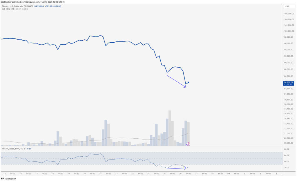 به گزارش میهن بلاکچین، در اوج این اصلاح، بیت کوین برای مدت کوتاهی در سطح ۸۲,۲۵۶ دلار معامله شد و سپس خریدارانی وارد بازار شدند، اما دادهها نشان میدهد احتمال کاهش بیشتر قیمت پیش از تثبیت بازار وجود دارد.