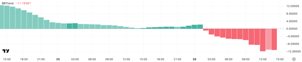 - شاخص BBTrend سیگنال منفی میدهد؛ احتمال اصلاح قیمت؟