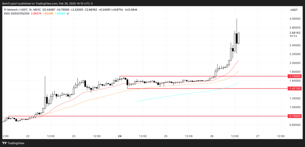 قیمت پای نتورک (PI) در ۲۴ ساعت گذشته بیش از ۷۰٪ رشد کرده است که باعث شده ارزش بازار آن به ۱۶ میلیارد دلار و حجم معاملاتش به بیش از ۲.۳ میلیارد دلار برسد. این رمزارز با رسیدن به اوج تاریخی جدید در نزدیکی ۳ دلار، در موقعیت حساسی قرار دارد، زیرا نشانههایی از واگرایی تکنیکال به چشم میخورد که ممکن است نوسانات شدیدی را در آینده نزدیک به همراه داشته باشد.
