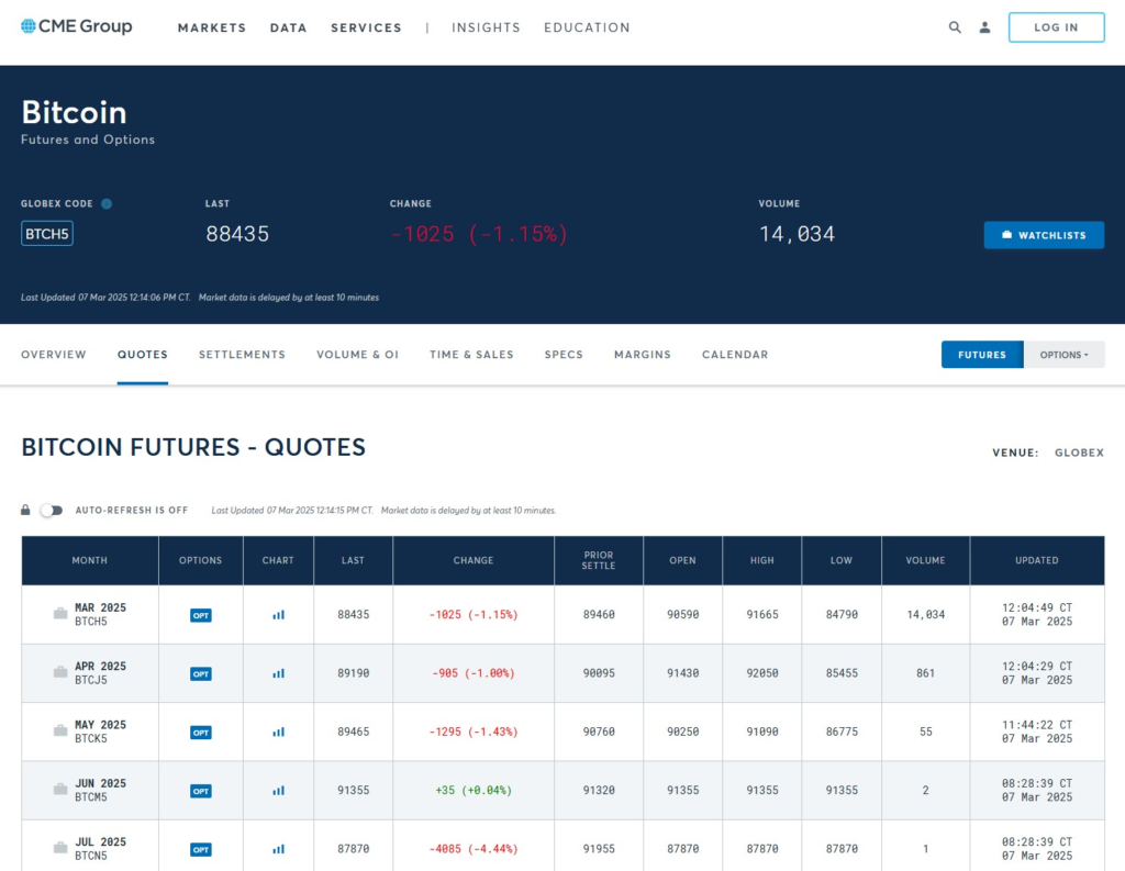 همچنین، قراردادهای آتی بیت کوین عقبنشینی کردند. دادههای «بورس کالای شیکاگو» (CME)، بزرگترین بازار مشتقات آمریکا، نشان میدهد که قیمت بیشتر قراردادهای آتی بیت کوین حدود ۲٪ کاهش داشته است. قراردادهای آتی توافقنامههای استانداردی هستند که برای خرید یا فروش یک دارایی در تاریخ مشخصی در آینده تنظیم میشوند.