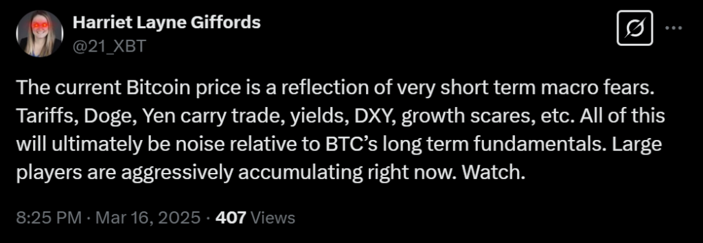 این تحلیلگر چندین عامل را برای ضعف اخیر قیمت بیت کوین، از جمله «تعرفهها، دوج (DOGE)، معاملات کری ین، بازده اوراق قرضه، DXY و نگرانیهای رشد اقتصادی» مطرح کرده است. با این حال، او تأکید میکند که هیچیک از این موارد بنیادهای بلندمدت بیت کوین را تغییر نمیدهند و در نهایت قیمت آن افزایش خواهد یافت.