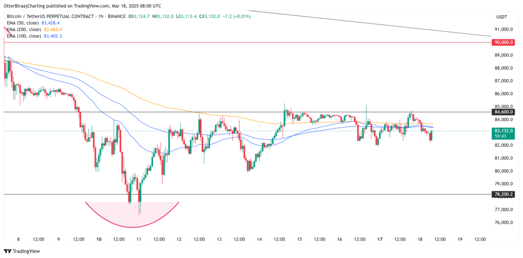 قیمت بیت کوین در تاریخ ۱۷ مارس (۲۷ اسفند) بار دیگر در عبور از مقاومت ۸۵٬۰۰۰ دلاری ناکام ماند. از ۱۲ مارس (۲۲ اسفند) تاکنون، قیمت بیت کوین در کندلهای روزانه سقفهایی بین ۸۴٬۰۰۰ تا ۸۵٬۲۰۰ دلار ثبت کرده اما موفق نشده است که کندلی بالاتر از ۸۴٬۶۰۰ دلار ببندد.