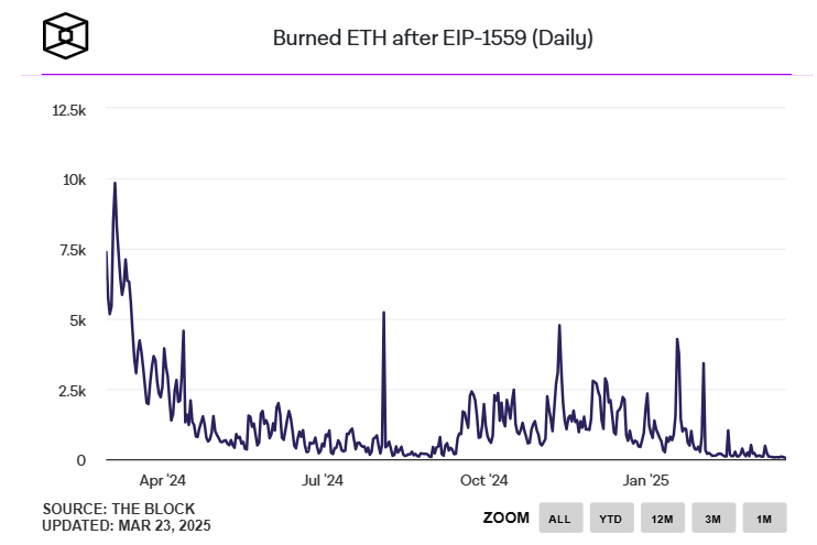 مقدار اتریومی که به دلیل کارمزدهای تراکنش سوزانده شده است، روز شنبه به کمترین میزان تاریخ خود رسید که نشاندهنده کاهش قابلتوجه تقاضا برای فضای بلاکهای شبکه اتریوم است.