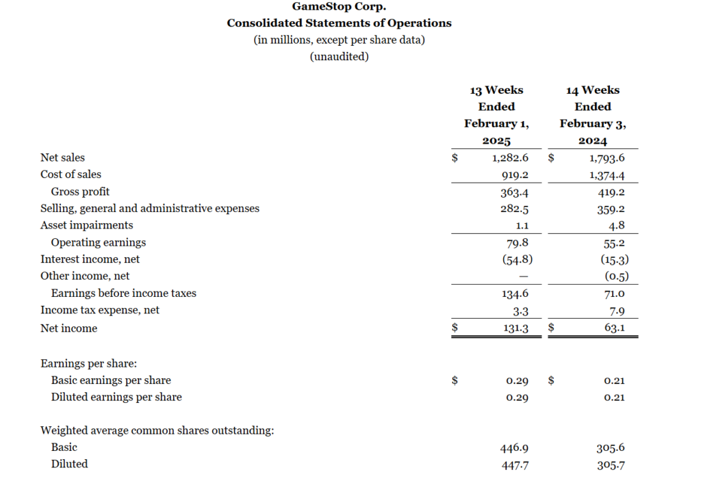 گزارش درآمد سهماهه گیماستاپ – منبع: GameStop