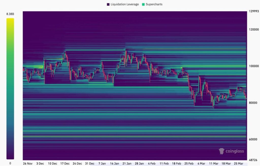 دادههای کوین گلس (CoinGlass) نشان میدهد که در بازه زمانی شش ماهه، علاقه زیادی از سوی خریداران در محدوده ۷۰٬۰۰۰ تا ۸۰٬۰۰۰ دلار وجود دارد. این موضوع نشان میدهد قیمت بیت کوین ممکن است کاهش بیشتری پیدا کند تا نقدینگی را در این محدوده پیش از بهبود پایدار جمعآوری کند.
