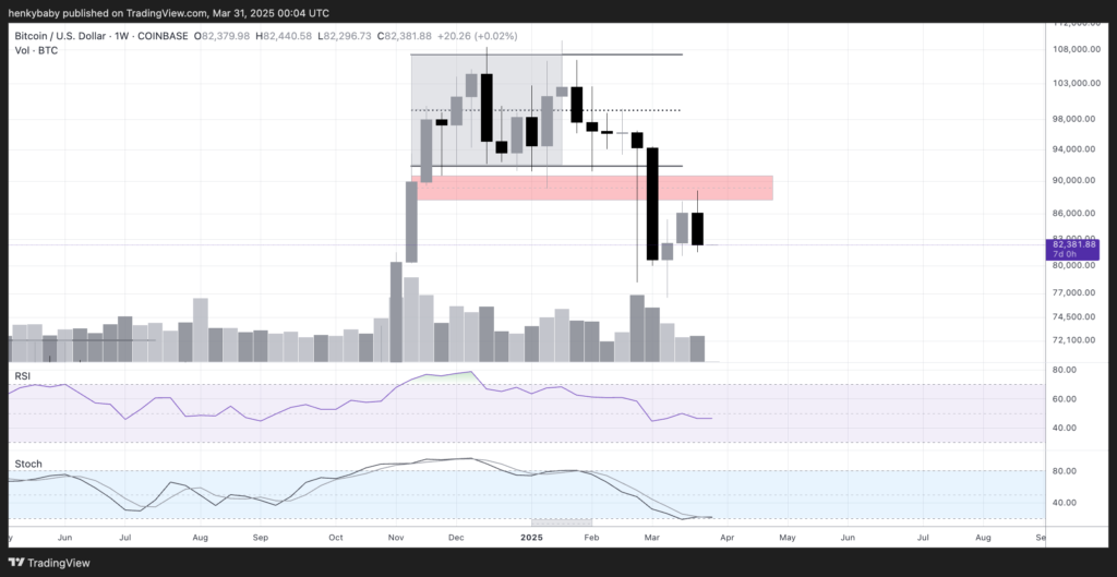 دادهها تایید میکنند که پایینترین سطح قیمت بیت کوین در طول دو هفته اخیر – یعنی حدود ۸۱,۲۰۰ دلار – در بستهشدن کندل هفتگی ۳۰ مارچ (۱۰ فروردین) ثبت شده است.