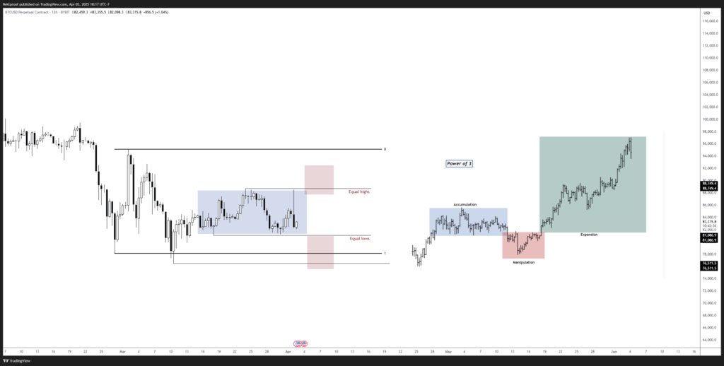 رکتپروف (RektProof) – تحلیلگر مطرح بازار ارزهای دیجیتال – نیز پیشبینی خود را به اشتراک گذاشت. او معتقد است احتمال افت قیمت بیت کوین به محدوده ۷۶,۰۰۰ تا ۸۱,۰۰۰ دلار وجود دارد که میتواند فرصت خوبی برای خرید باشد.