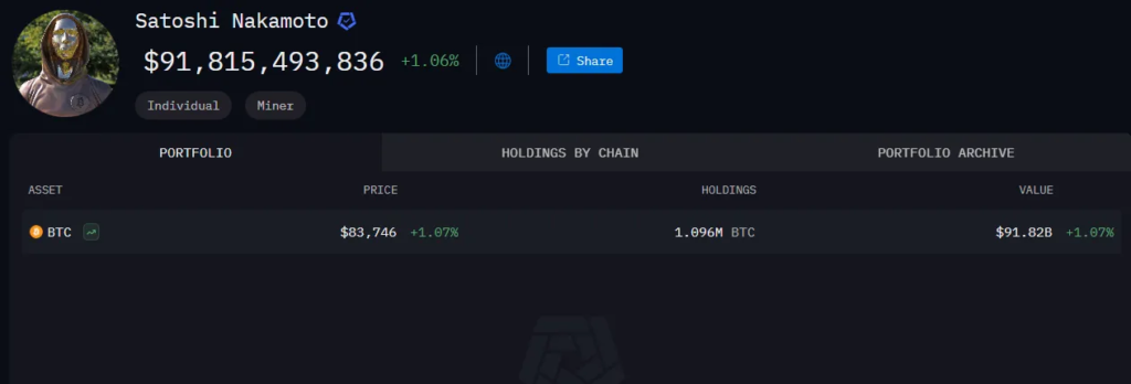تصویر: داراییهای بیتکوین ساتوشی ناکاموتو. منبع: آرکام (Arkham)