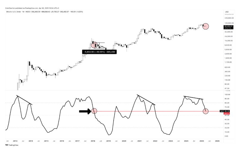 دیدگاه او پاسخی است به معاملهگرانی که حرکت استوکستیک اسیلیتور یکماهه بیت کوین را با سطوح گذشته آن در سال ۲۰۱۷ مقایسه کرده و بر این اساس، پیشبینی مشابهی برای بازار کنونی دارند. بر اساس این نمودار، نوسانگر از ابتدای سال ۲۰۲۵ وارد همان روند نزولی مشابه با سال ۲۰۱۷ شده است. در حال حاضر نیز این شاخص در حوالی سطح ۶۰ قرار دارد؛ یعنی همان سطحی که در اصلاح قیمتی بازار صعودی سال ۲۰۱۷ نیز مشاهده شده بود.