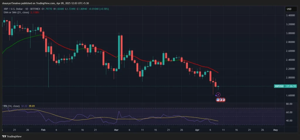 تحلیل نمودار روزانه قیمت آلت کوین ریپل – منبع: TradingView