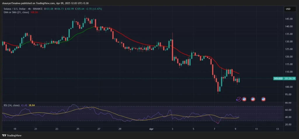 تحلیل نمودار ۴ ساعته قیمت آلت کوین سولانا – منبع: TradingView