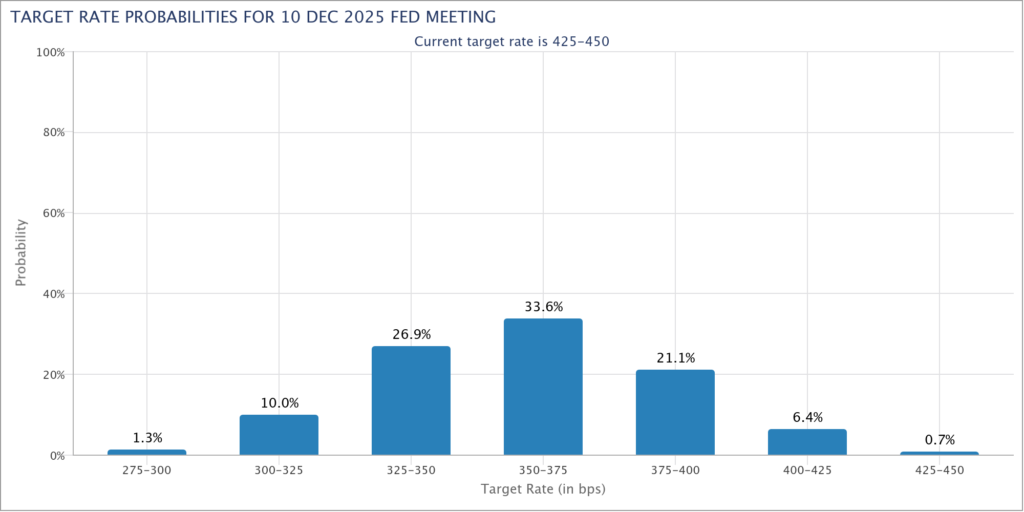 احتمال تغییر نرخ بهره در جلسه فدرال رزرو ماه دسامبر – منبع: CME