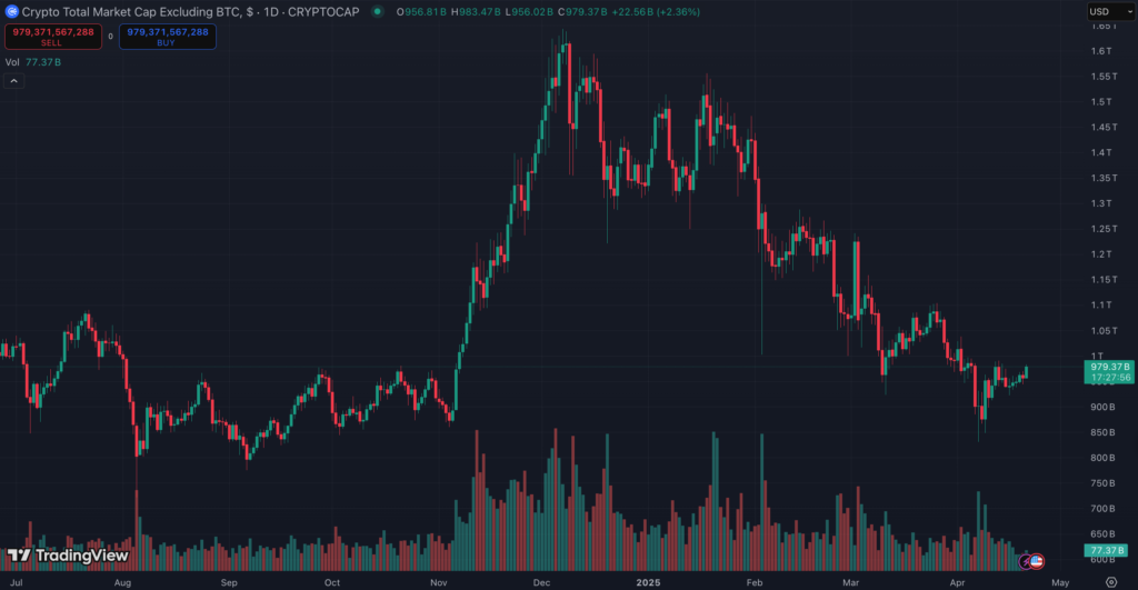 نمودار روزانه ارزش بازار آلت کوینها (TOTAL2) – منبع: TradingView