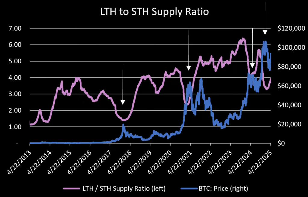 دادههای آنچین حاکی از بازگشت هولدرهای بلندمدت به بازار بهعنوان خریدار است. این گروه در حال حاضر ۶۹٪ از کل عرضه بیت کوین را در اختیار دارند که نسبت به پایینترین سطح ۶۶٪ در تاریخ ۱ فوریه ۲۰۲۵ افزایش یافته است.