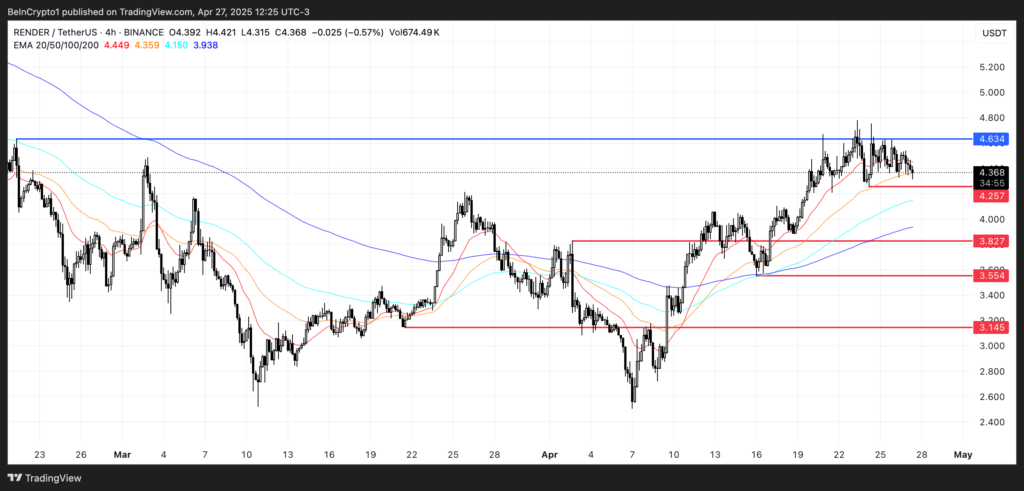 با این حال، اگر رندر بتواند شتاب مثبتی پیدا کند، بازگشت به سطح ۴.۶۳ دلار همچنان ممکن خواهد بود.