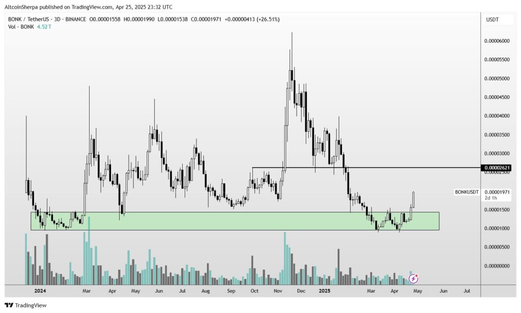 تحلیل قیمت آلت کوین BONK – منبع: حساب Altcoin Sherpa در X