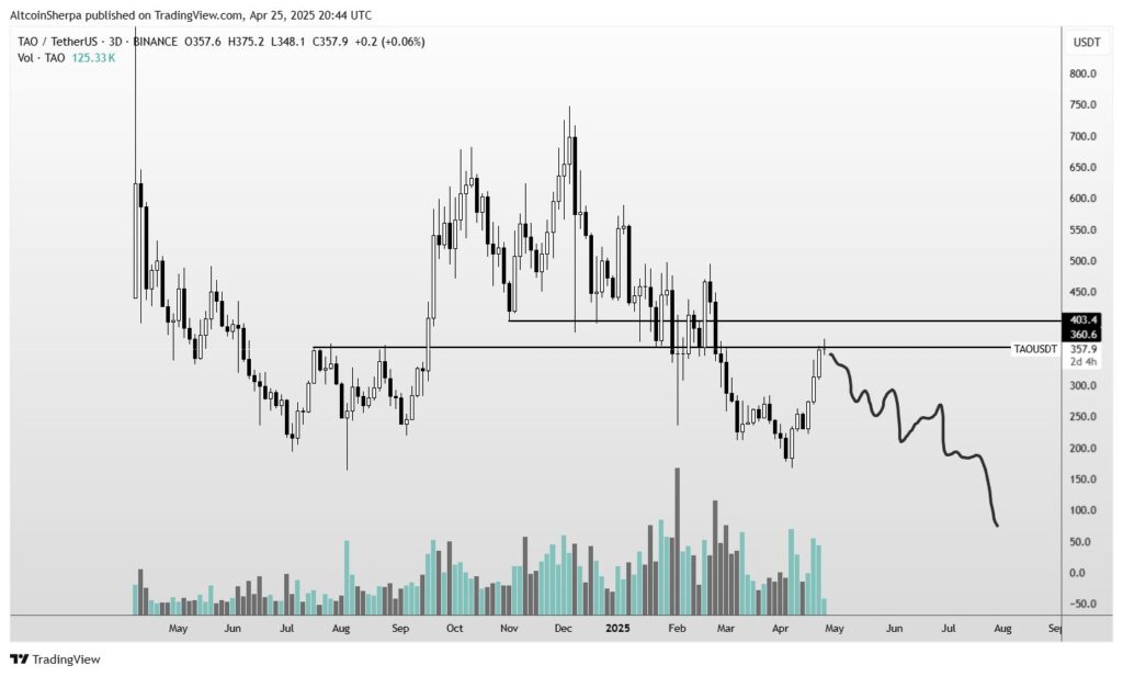 تحلیل قیمت آلت کوین TAO – منبع: حساب Altcoin Sherpa در X