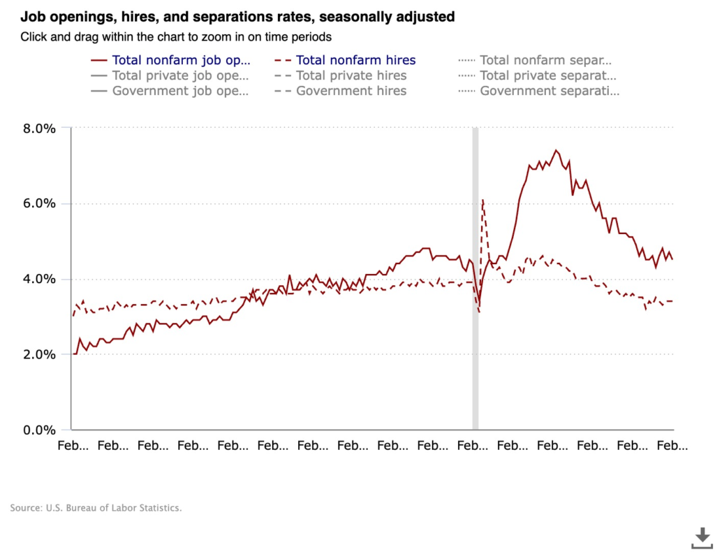 در این هفته، تقویم گزارشهای کلان اقتصادی نیز مملو از رویدادهای مهم است. امروز ۲۹ آوریل (۹ اردیبهشت)، گزارش فرصتهای شغلی و گردش نیروی کار (JOLTS) منتشر خواهد شد که میتواند نشان دهد جنگ تجاری و تعرفههای اعمالشده از سوی آمریکا چه تأثیری بر بازار کار این کشور داشتهاند.