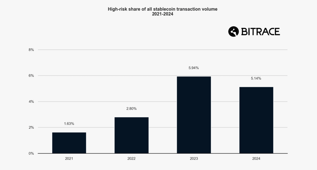سهم تراکنشهای پرریسک استیبل کوینی در هر سال – منبع: Bitrace