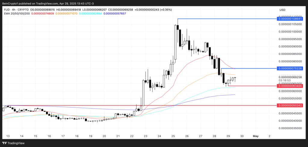 فاد (Fud the Pug) یکی دیگر از میم کوینهایی است که بهدنبال کسب جایگاه در فضای رو به رشد میم کوینهای سویی است. ارزش بازار FUD اکنون به ۳.۳۹ میلیون دلار رسیده که نسبت به اوج ۵.۹ میلیون دلاری در ۲ روز گذشته کاهش یافته است.