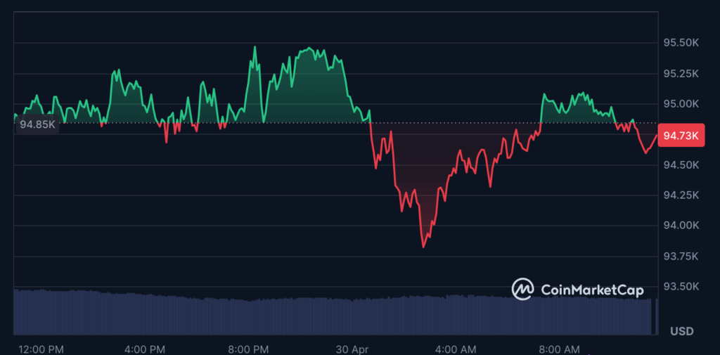 با این حال، قیمت بیت کوین علیرغم این تحرکات در طول ۲۴ ساعت گذشته ۰.۳۴٪ کاهش یافته و در زمان نگارش این مطلب، به ۹۴,۷۲۹ دلار رسیده است.