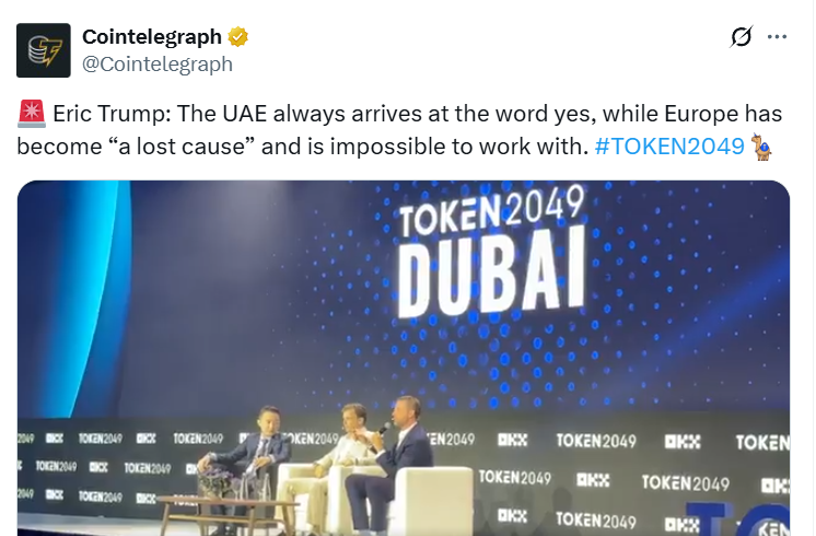 این اقدام نخستین ورود شرکت MGX به فضای ارزهای دیجیتال محسوب میشود. در همین نشست، اریک ترامپ با انتقاد از ناکارآمدی و ساعات محدود سیستم مالی سنتی، گفت: