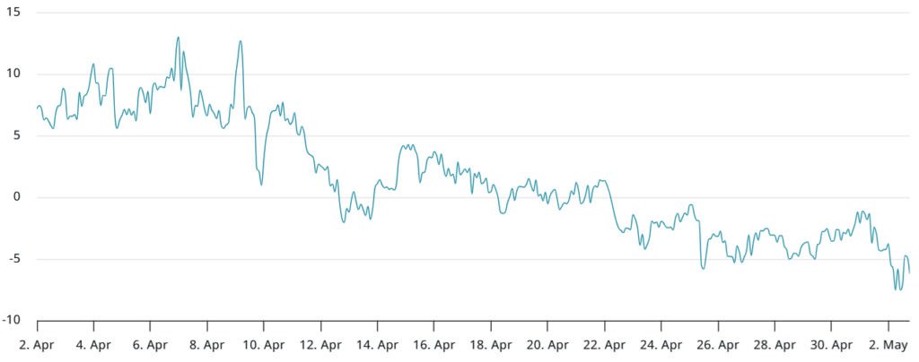 بهطور کلی، بازار مشتقه بیت کوین نشانههایی از خوشبینی محتاطانه را نشان میدهد. اگرچه معاملهگران صعودی تمایلی به استفاده از لوریج ندارند، اما همین احتیاط میتواند زمینهساز یک رشد ناگهانی و غافلگیرکننده شود؛ مخصوصاً که اصلاح اخیر تا ۷۴٬۵۰۰ دلار در ۹ آوریل، تأثیر محسوسی بر بازار مشتقه نداشت.