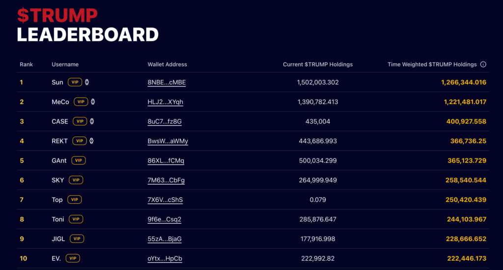 ۱۰ هولدر برتر میم کوین ترامپ – منبع: Trump meme