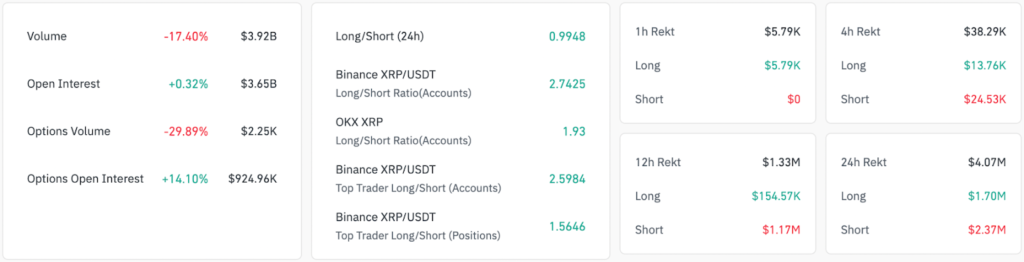 دادههای معاملات مشتقات ریپل – منبع: CoinGlass