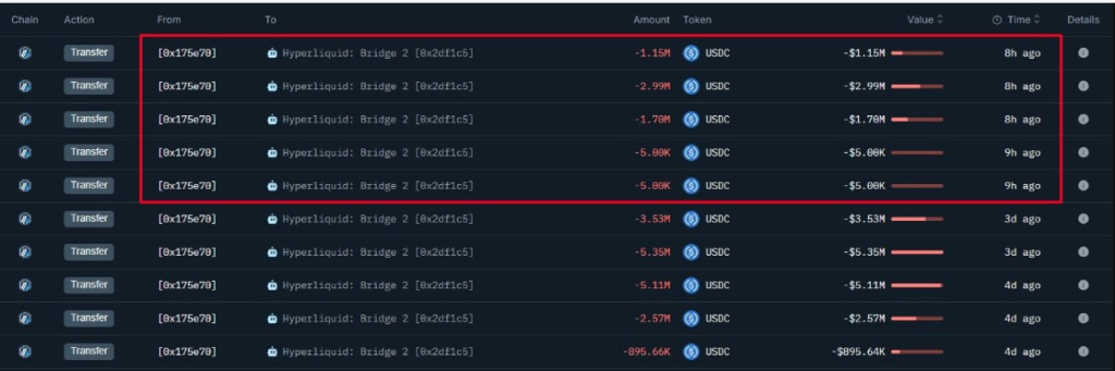 دادههای آنچین نشان میدهد که نهنگها روی تداوم این روند صعودی حساب ویژهای باز کردهاند. اخیراً یک آدرس بزرگ، ۵.۸۴ میلیون دلار USDC را به پلتفرم هایپرلیکویید (Hyperliquid) منتقل و با اهرم ۲ برابر موقعیت خرید بزرگی روی ریپل باز کرده است.