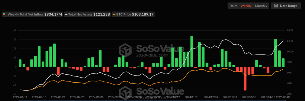 خریدهای اسپات نقش پررنگی در جهش قیمتی هفته گذشته بیت کوین داشتند و اعلامیه ۱۲ می (۲۲ اردیبهشت) از سوی شرکت استراتژی به همراه ورود سرمایه به صندوقهای ETF اسپات بیت کوین طی هفت روز اخیر، این سؤال را مطرح میکند که آیا اشتهای خرید قوی که از اواخر آوریل آغاز شده، در هفته پیش رو نیز ادامه خواهد یافت یا خیر.