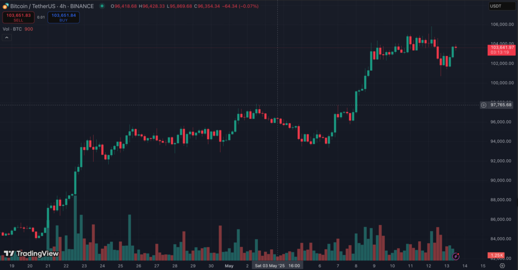 نمودار ۴ ساعته قیمت بیت کوین – منبع: TradingView