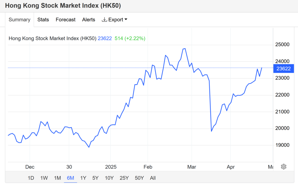 یکی از عوامل مهم در این بازگشت توجه، عملکرد چشمگیر شاخص بورس هنگکنگ بوده که بخش بزرگی از آن متشکل از شرکتهای چینی است. این شاخص در سال ۲۰۲۴ یکی از بهترین عملکردها را در میان بازارهای جهانی داشته و باعث افزایش علاقه سرمایهگذاران به داراییهای چینی شده است.