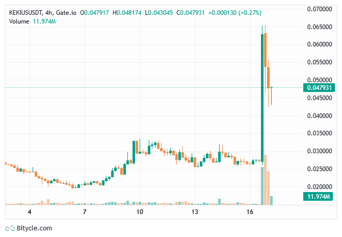 بر اساس دادههای کوین مارکت کپ، قیمت ککیوس طی ۲۴ ساعت گذشته با ۱۵۰٪ رشد به ۰.۰۴۷ دلار رسید. این در حالی است که پیش از این رشد ناگهانی، میانگین قیمت این توکن در حدود ۰.۲۵ دلار تثبیت شده بود.