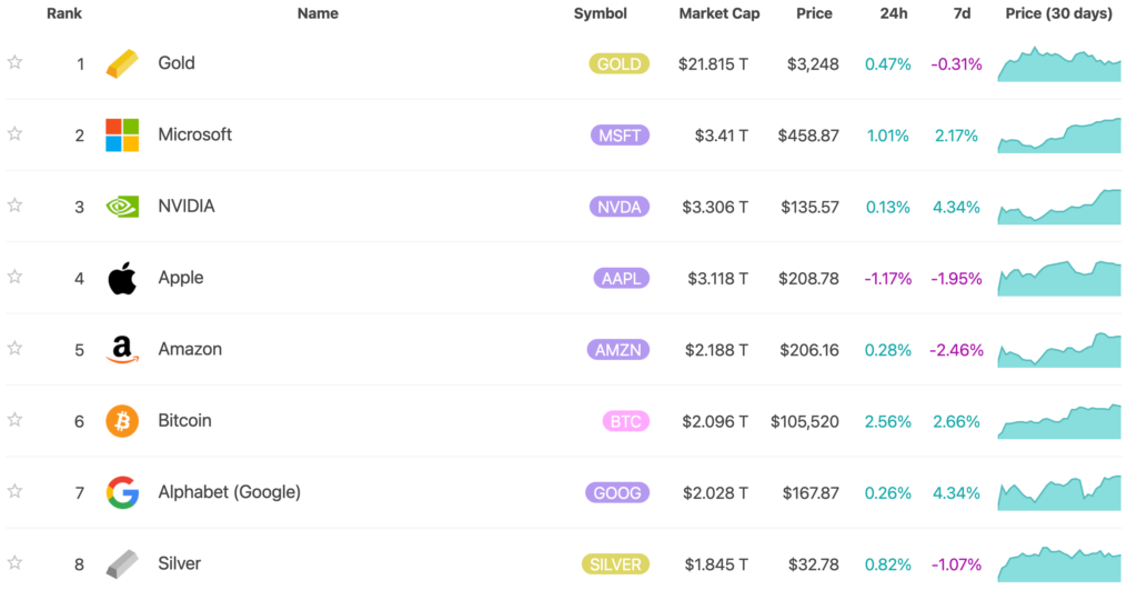ارزشمندترین داراییهای جهان – منبع: 8marketcap