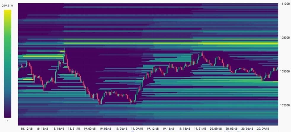 در حال حاضر، بیش از ۳ میلیارد دلار پوزیشن شورت در صورتی که قیمت بیت کوین از ۱۰۵٬۰۰۰ دلار به ۱۱۰٬۰۰۰ دلار برسد، در معرض لیکوئید شدن هستند. در مقابل، برای لیکوئید شدن همین مقدار پوزیشن لانگ، قیمت باید تا ۹۴٬۶۱۲ دلار کاهش پیدا کند. تقارن نداشتن در ساختار بازار نشان میدهد احتمال افزایش قیمت برای جذب نقدینگی فروشندگان بیشتر از احتمال کاهش است.