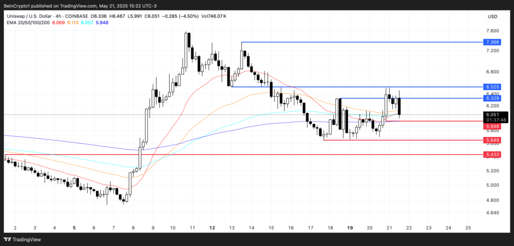 در حال حاضر، قیمت یونی سواپ نزدیک به سطح حمایت ۵.۹۴ دلار معامله میشود. اگر این سطح از دست برود، ممکن است قیمت تا ۵.۶۴۹ یا حتی ۵.۴۳ دلار کاهش یابد. اما در صورت بازیابی روند صعودی، احتمال دارد قیمت ابتدا تا ۶.۳۲۹ دلار رشد کند، مقاومتهای بعد در سطوح ۶.۵۲ و ۷.۳۶ دلار قرار دارند.