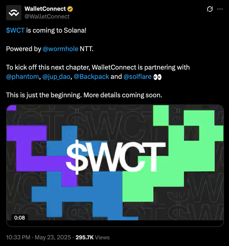 توکن والت کانکت (WalletConnect) با نماد WCT وارد شبکه سولانا شده و ۵ میلیون واحد از این توکن قرار است به کاربران فعال این بلاکچین ایردراپ شود.