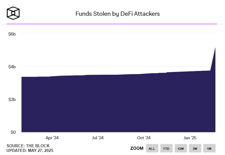 بر اساس داشبورد دادههای دبلاک، هکرها تاکنون در مجموع بیش از ۵.۳ میلیارد دلار از پروتکلهای دیفای سرقت کردهاند.