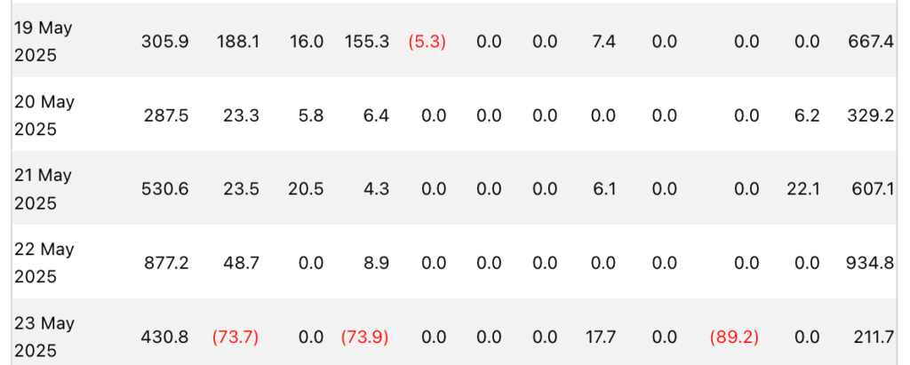 در هفته معاملاتی منتهی به ۲ خرداد (۲۳ می)، حدود ۲.۷۵ میلیارد دلار به ETFهای اسپات بیت کوین وارد شد.