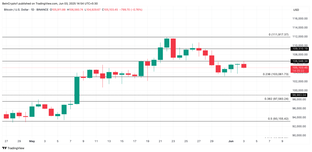 اما در صورت افزایش فشار فروش از سوی معاملهگران، احتمال ریزش قیمت تا حمایت ۱۰۳٬۰۶۱ دلار نیز وجود دارد. اگر این حمایت هم شکسته شود، قیمت بیت کوین ممکن است بار دیگر به زیر سطح مهم ۱۰۰ هزار دلاری کاهش یابد.