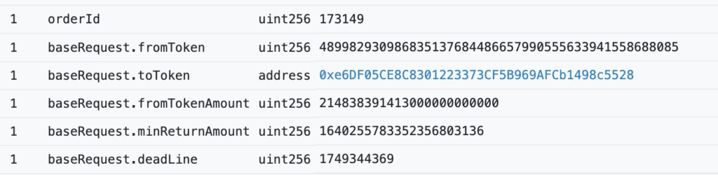 بر اساس پارامترهای فنی، کاربر قصد داشت ۲۱۴٬۸۳۸ دلار را به KOGE تبدیل کند که میتوانست با حدود ۳٬۳۰۰ KOGE مبادله شود. اما، از آنجایی که حداقل تعداد KOGE های دریافتی روی ۱۶۴۰ تنظیم شده بود، میتوان استنباط کرد که لغزش کاربر نزدیک به ۵۰٪ تنظیم شده و محافظت MEV فعال نبوده است. این کاربر در نهایت ۲٬۵۴۷ توکن دریافت کرد.