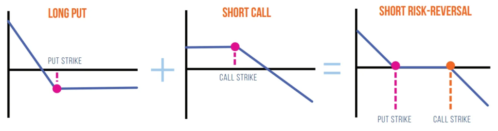یکی از استراتژیهایی که در دو هفته اخیر در دریبیت محبوب بوده، استراتژی Short Risk Reversal بوده است. این استراتژی زمانی سود میدهد که قیمت کاهش پیدا کرده و در عین حال، در ابتدا معاملهگر مبلغی به عنوان پریمیوم دریافت میکند. این روش به این صورت است که معاملهگر یک آپشن پوت (Put) خریده و همزمان یک کال (Call) میفروشد تا اگر قیمت به کمتر از قیمت اعمال اختیار فروش (Put Strike) رسید، ریسک را پوشش دهد.