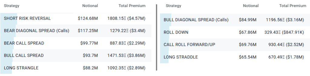 برترین استراتژیهای آپشن اتریوم دریبیت در دو هفته گذشته – منبع: Laevitas.ch