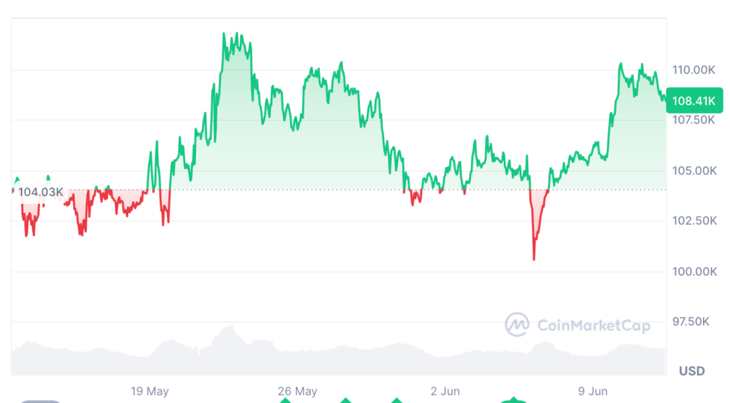در حال حاضر، بیت کوین نزدیک به اوج تاریخی خود معامله میشود. طبق دادههای کوینمارکتکپ (CoinMarketCap)، قیمت بیت کوین در زمان نگارش مطلب معادل ۱۰۷٬۸۸۲ دلار است. این عدد فقط ۳٬۲۷۲ دلار کمتر از سقف تاریخی بیت کوین در ۲۲ می (۱ خرداد) است که در سطح ۱۱۱٬۹۷۰ دلار ثبت شده بود.